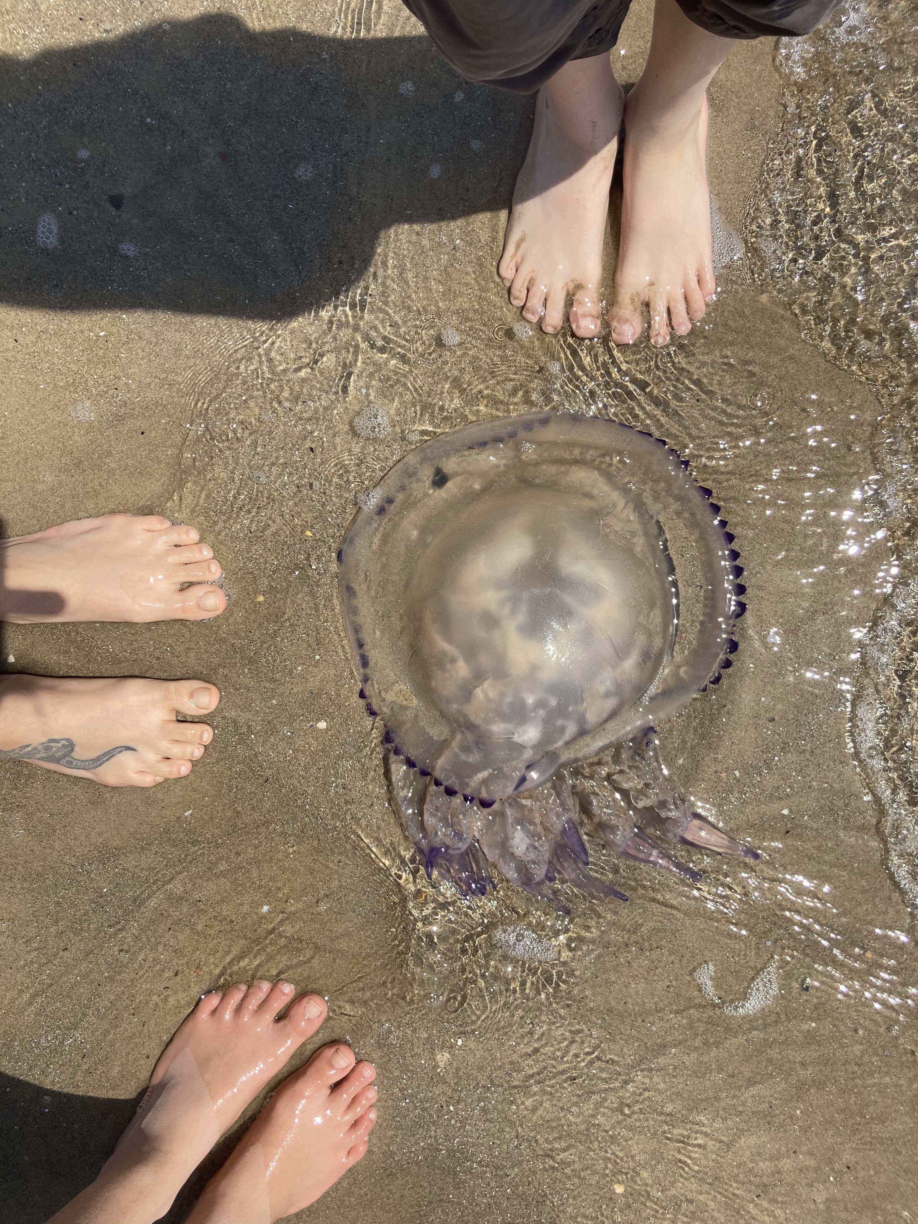 We found hundreds of shells, many huge stranded jellyfishes, and no/ zero/nada tourists!